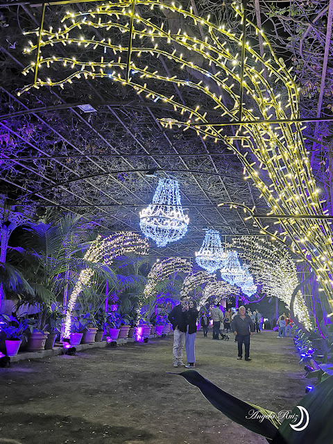 A medida que avanzamos por los senderos, las luces parpadeantes crean un ambiente encantador, pintando sombras danzantes sobre las hojas y las flores.